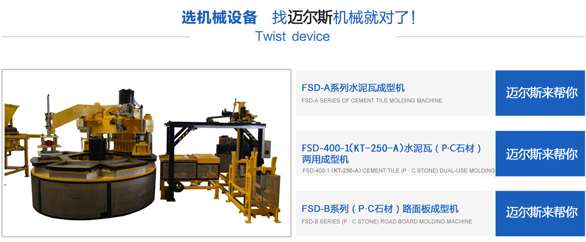 常熟市邁爾斯機(jī)械有限公司是一家集研發(fā)、生產(chǎn)、銷售于一體的建材機(jī)械高科技企業(yè),其前身為2011年注冊(cè)創(chuàng)辦的“常熟市虞山鎮(zhèn)豐順達(dá)機(jī)械配件廠”,經(jīng)過(guò)多年的努力,于2017年注冊(cè)成立“常熟市邁爾斯機(jī)械有限公司”,專業(yè)生產(chǎn)模壓水泥彩瓦機(jī)、P.C石材機(jī)、轉(zhuǎn)盤式成型機(jī)、彩色路面磚機(jī)等綠色建材設(shè)備。公司以市場(chǎng)為龍頭,以技術(shù)為導(dǎo)向,開發(fā)了系列化、標(biāo)準(zhǔn)化的適銷對(duì)路的機(jī)械產(chǎn)品,并且注冊(cè)了多項(xiàng)國(guó)家專利技術(shù),銷售范圍覆蓋全國(guó),并且出口越南、老撾等東南亞和其它國(guó)家。